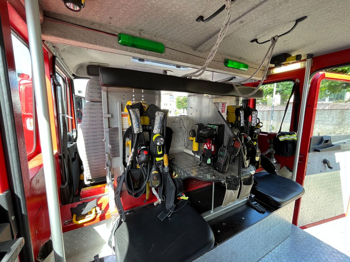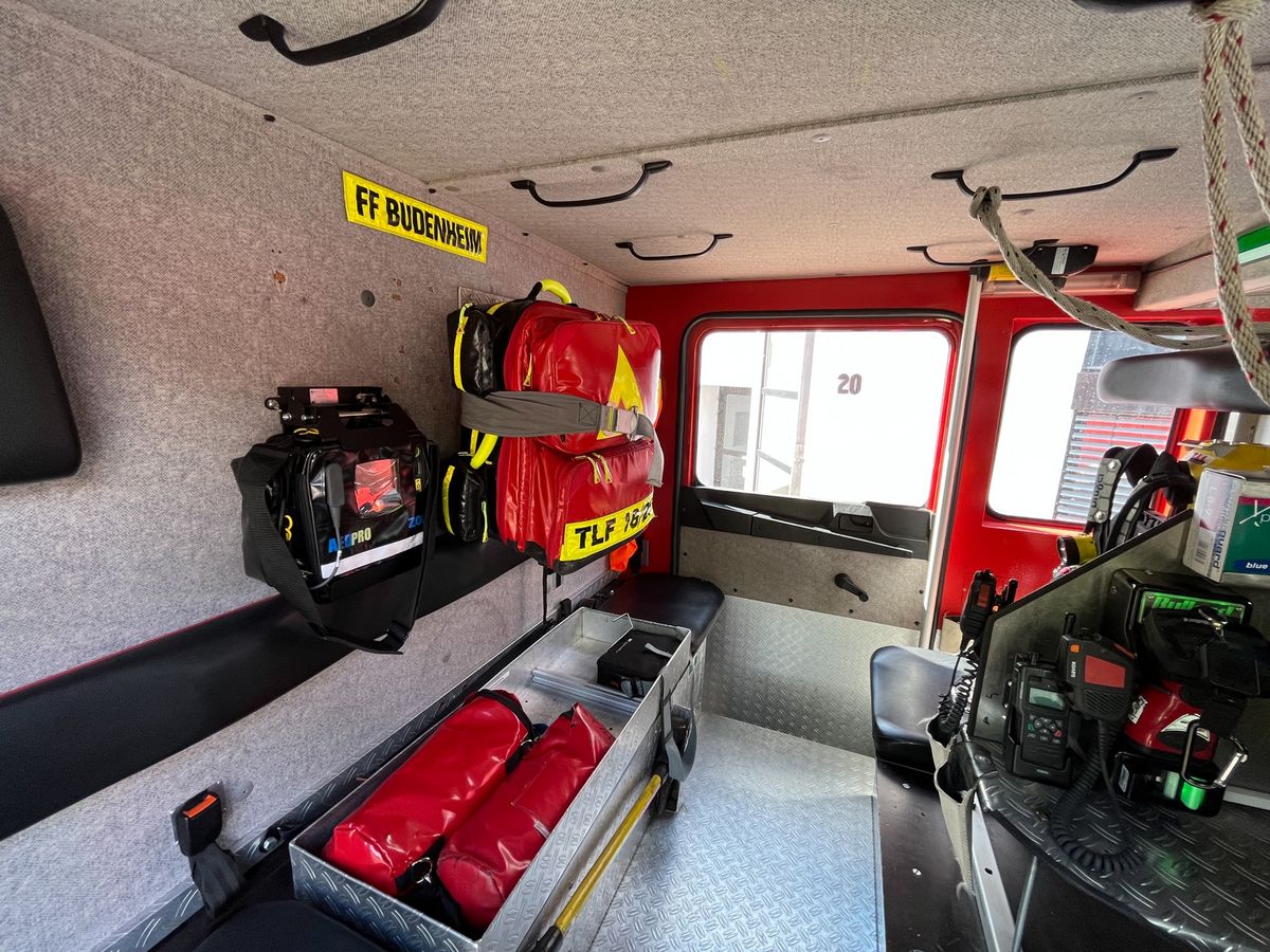 Feuerlöschkreiselpumpe 16/8 Wasserführende Amaturen Wassertank von 2.500 Liter Hochdrucklüfter 4 Atemschutzgeräte (PSS 90 mit Bodyguard II) Atemschutzüberwachungstafel Schleifkorbtrage 3-teilige Schiebleiter Lichtmasst mit 2x1000 W Kettensäge + Zubehör 8 KVA Notstromagregat Turbo-Zumischer der Größe Z4 Ringmonitor Hohlstrahlrohr Türöffnungswerkzeug Notfallrucksack |
