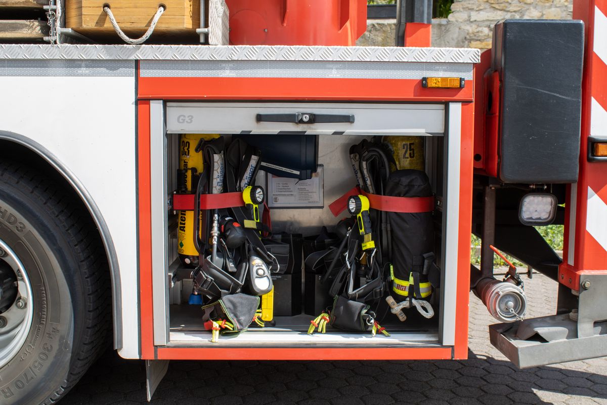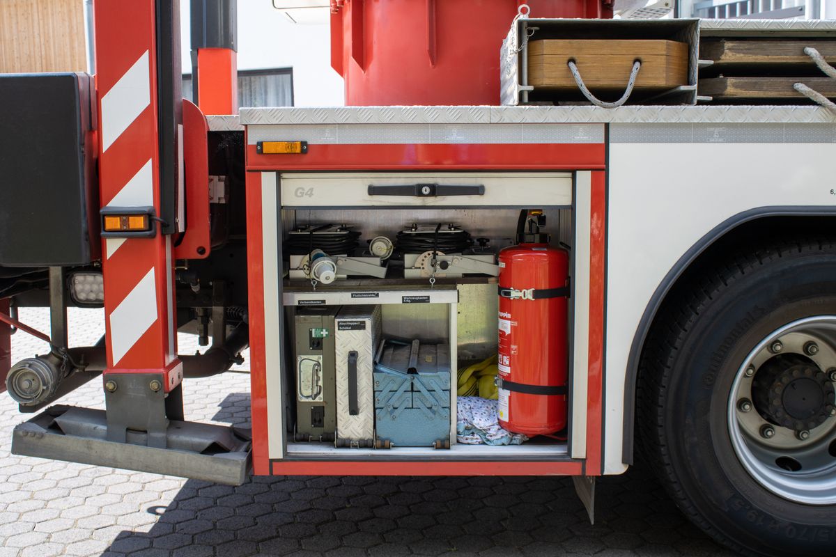 Wasserführende Amaturen Wasserwerfer mit Fernsteuerung (hydraulisch) Krankentragenlagerung 2 Pressluftatmer elektr. Kettensäge Turbinenlüfter Sprungretter |